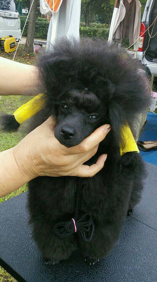 初めてのスプレーにも動じず、お利口にセットさせてくれました。